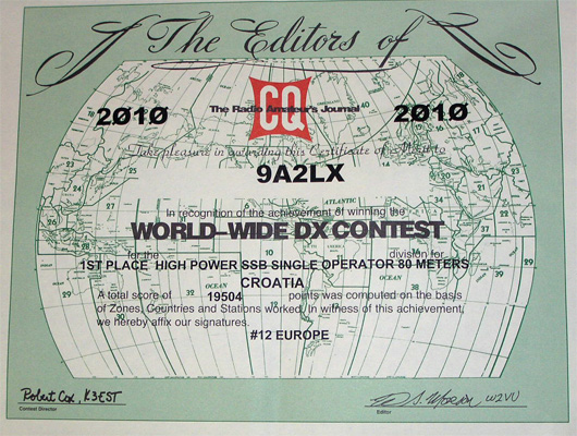 Za sada se samo javio 9A2LX Boban sa svojim natjecateljskiim rezultatima: