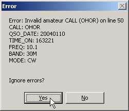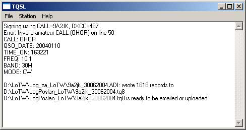 GREŠKA U LOGUŠto ako je TQSL našao grešku u vašem logu? Ako nađe grešku, program generira poruku Error sa informacijama o nađenoj greški kao u primjeru na slici.![]() Ignorirajte grešku klikom na YES. Zašto ignorirati grešku? Na kraju pretvorbe TQSL će dati izvještaj o SVIM nađenim greškama. Ako sada kliknete na No, program će prekinuti daljnju pretvorbu i neće dati izvještaj o eventualnim drugim greškama. ![]() Primjer izvještaja sa nađenom greškom je u gornjem prozoru. Error: Invalid amateur CALL (OHOR) on line 50 Greška: neispravan pozivni znak (OHOR) u liniji 50 Pozivni znak su slova "O", "H", "O" i "R". To ne može biti, jer se pozivni znak amaterske postaje sastoji od prefiksa, broja i sufiksa. Provjerite u svom dnevniku. Pazite, morate tražiti OHOR, ne O H nula R. Ispravite sve nađene greške u svom programu za vođenje dnevnika i ponovite cijeli postupak od eksportiranja dnevnika u .adi i potpisivanja u TQSL. Prije toga obrišite eksportiranu .adi datoteku i potpisanu .tq8 datoteku. Brisanjem ovih datoteka ne može se dogotiti nikakva šteta. Svi vaši QSO-i su u programu za vođenje dnevnika (u datotekama koje koristi taj program). Potpisivanje možete ponavljati bezbroj puta bez posljedica. Konačno je tek onda kad ste potpisani dnevnik poslali u LoTW kao .tq8 datoteku. (I onda je moguće popraviti eventualnu "štetu", ali na teži način!). Slovo O u pozivnom znaku, umjesto nule, dosta je česta greška. Druga česta greška je vrsta emisije. Pojavom novih vrsta digitalnih komunikacija, javlja se problem njihovog jedinstvnog opisivanja. Neki programi za vođenje dnevnika čak nemaju ni dovoljno mjesta za duži opis vrste emisije, pa prilikom exportiranja u ADIF, u polju MODE dolazi do pogrešnog opisa vrste emisije. Npr. umjesto PSK31 u polju mode piše PSK. Problem ovakvog krivog prikaza vrste emisije TQSL može riješiti. Otvorite TQSL i onda File | Preferences... ![]() Postavke programa bi trebale biti kao na slici. Allow nonamateur call signs (dozvoli neamaterske pozivne znakove) - ako bi ova opcija bila aktivirana, onda program ne bi javio grešku za npr. OHOR. Prompt for QSO Date range when signing - traži da upišete datumsko područje veza koje želite poslati u LoTW - ako je ova opcija isključena, program šalje sve veze iz vašeg dnevnika u LoTW. Ovo nije dobro, jer višestruko slanje veza (dakle veza koje su već poslane) samo opterećuje sustav LoTW. U prozoru Preferences kliknite na ADIF Modes ![]() U Custom ADIF mode mappings: definirate kako će TQSL protumačiti pojedinu vrstu emisje iz vaše ADIF datoteke. Npr. u WordPad-u otvorite svoju ADI datoteku i pod MODE: vidite da umjesto PSK31 piše PSK. Za TQSL ovo nije dobar opis vrste emisije, ali zato u TQSL možete odrediti da svaki put kad TQSL naiđe na <MODE:5>PSK u ADI datoteci, to protumači kao PSK31 (zato jer vi znate da je veza u stvari bila PSK31, a ne PSK63 ili slično!) Kliknite na Add... ![]() U polje ADIF Mode: upišite PSK, a u doljnjem polju nađite PSK31, označite i kliknite na OK. Zatvorite prozor Preferences (klik na OK) i ponovite cijeli postupak digitalnog potpisivanja dnevnika. |