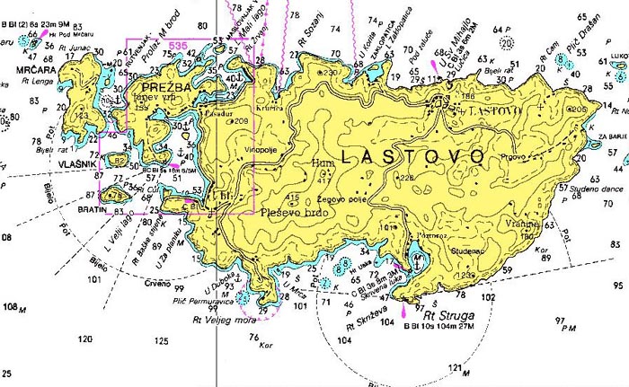 (Click on Rt Struga to see photos) 42°43,4'N & 16°53,4'E |