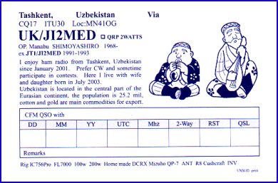 | UJ | UZBEKISTAN | UK/JI2MED | ||||||||||||||
