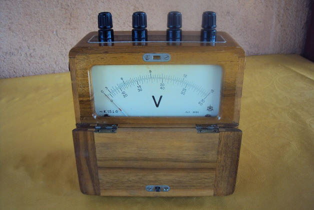 LABORATORY WOODEN CASE VOLTMETER METRA |