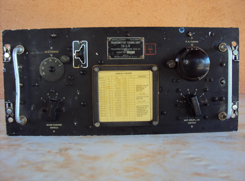 Manufactured in General Electric Co., USA ![]() ELECTROMECHANICAL SET TYPE: T MATCH, ROLLER INDUCTOR, AIR GAP CAPACITOR FREQUENCY: 1,5 – 3 MHz POWER: 300 W INDICATOR: ANTENNA CURRENT SOURCE: Krešo Lerota